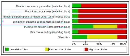 Risk of bias graph representing author’s judgement about each risk of bias item presented as percentage of risk across all studies.
