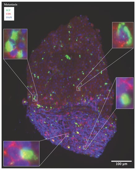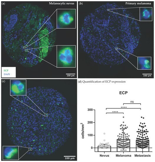 - Krückel, A.; Moreira, A.; Fröhlich, W.; Schuler, G.; Heinzerling, L. Eosinophil-cationic protein—A novel liquid prognostic biomarker in melanoma. BMC Cancer 2019, 19, 207. [Google Scholar] [CrossRef] [PubMed]