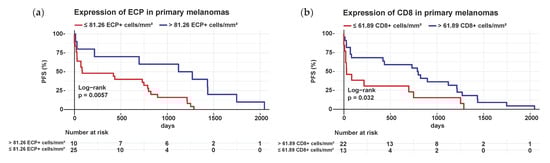 3.5. Association between the Amount of Tumor-Infiltrated Activated Eosinophils as Well as Effector T-Cells and the Survival of Melanoma Patients