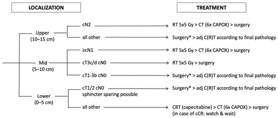 Chicago/Turabian StyleRoeder, Falk, Sabine Gerum, Stefan Hecht, Florian Huemer, Tarkan Jäger, Reinhard Kaufmann, Eckhard Klieser, Oliver Owen Koch, Daniel Neureiter, Klaus Emmanuel, and et al. 2022. "How We Treat Localized Rectal Cancer—An Institutional Paradigm for Total Neoadjuvant Therapy" Cancers 14, no. 22: 5709. https://doi.org/10.3390/cancers14225709