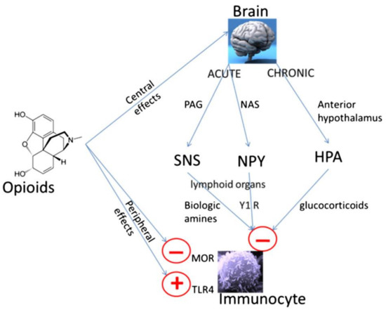 - Eisenstein, T.K. The Role of Opioid Receptors in Immune System Function. Front. Immunol. 2019, 10, 2904. [Google Scholar] [CrossRef]