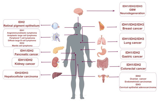 Changes in wild-type IDH expression are associated with human diseases. (By Figdraw).