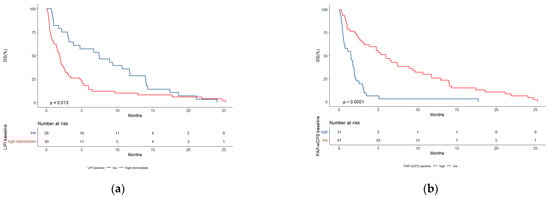 (a) Overall survival (OS) according to LIPI score; (b) OS according to PaPwCPS score.