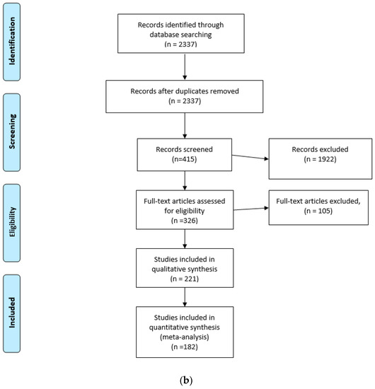 (a) PRISMA Flow Diagram for MPC. (b) PRISMA Flow Diagram for benign MPNs.