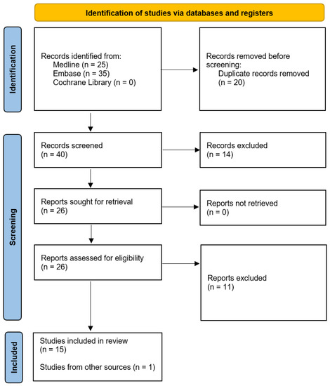 - Higgins, J.P.T.; Thomas, J.; Chandler, J.; Cumpston, M.; Li, T.; Page, M.; Welch, V. Cochrane Handbook for Systematic Reviews of Interventions; Version 6.2; The Cochrane Collaboration in London: London, UK, 2021; ISBN 9781119536659. [Google Scholar]