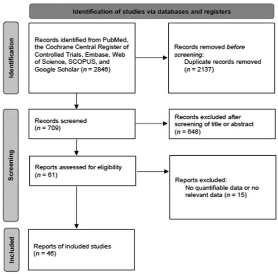 Forty-six studies with 39,085 participants were included in the analyses (Figure 1). Study characteristics are shown in Supplementary Table S1, and the results for bias assessment are presented in Supplementary Table S2.