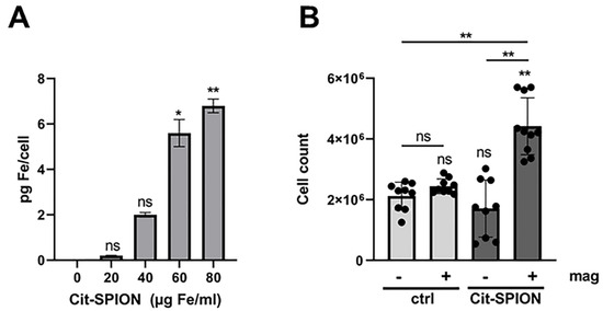 2.14. Loading of Cells with Cit-SPIONs and Magnetic Accumulation