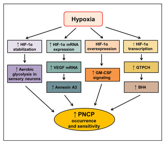 - Kanngiesser, M.; Mair, N.; Lim, H.-Y.; Zschiebsch, K.; Blees, J.; Häußler, A.; Brüne, B.; Ferreiros Bouzas, N.; Kress, M.; Tegeder, I. Hypoxia-Inducible Factor 1 Regulates Heat and Cold Pain Sensitivity and Persistence. Antioxid. Redox Signal. 2014, 20, 2555–2571. [Google Scholar] [CrossRef]