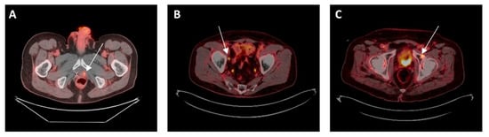 - Fendler, W.P.; Calais, J.; Eiber, M.; Simko, J.P.; Kurhanewicz, J.; Santos, R.D.; Feng, F.Y.; Reiter, R.E.; Rettig, M.B.; Nickols, N.G.; et al. False positive PSMA PET for tumor remnants in the irradiated prostate and other interpretation pitfalls in a prospective multi-center trial. Eur. J. Nucl. Med. Mol. Imaging 2021, 48, 501–508. [Google Scholar] [CrossRef] [PubMed]