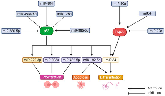 - Agostini, M.; Tucci, P.; Killick, R.; Candi, E.; Sayan, B.S.; Di Val Cervo, P.R.; Nicoterad, P.; McKeon, F.; Knight, R.A.; Mak, T.W.; et al. Neuronal differentiation by TAp73 is mediated by microRNA-34a regulation of synaptic protein targets. Proc. Natl. Acad. Sci. USA 2011, 108, 21093–21098. [Google Scholar] [CrossRef]
