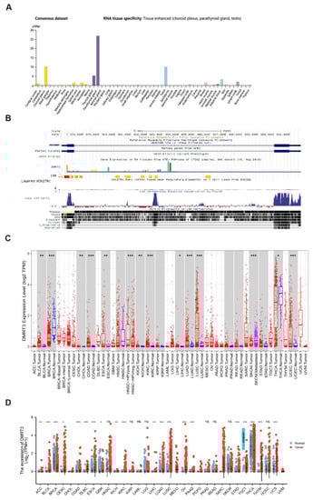 2.1. Analysis of the DMRT3 Expression in Pan-Cancer