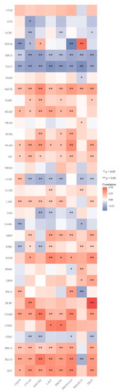 Using pan-cancer analyses, we are able to better understand the underlying molecular abnormalities of various cancers and to find biomarkers for early detection and the targeted treatment of cancer. TCGA analyzes 33 common tumor types using multi-omics data, offering the opportunity to uncover molecular aberrations across cancer types [34,35].