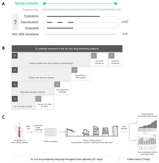 - Lin, L.; Tong, Y.; Straube, J.; Zhao, J.; Gao, Y.; Bai, P.; Li, J.; Wang, J.; Wang, H.; Wang, X.; et al. Ex-vivo drug testing predicts chemosensitivity in acute myeloid leukemia. J. Leukoc. Biol. 2020, 107, 859–870. [Google Scholar] [CrossRef]