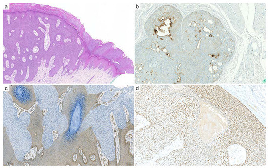 - Konstantinova, A.M.; Kyrpychova, L.; Nemcova, J.; Sedivcova, M.; Bisceglia, M.; Kutzner, H.; Zamecnik, M.; Sehnalkova, E.; Pavlovsky, M.; Zateckova, K.; et al. Syringocystadenoma papilliferum of the anogenital area and buttocks: A report of 16 cases, including human papillomavirus analysis and HRAS and BRAF V600 mutation studies. Am. J. Derm. 2019, 41, 281–285. [Google Scholar] [CrossRef] [PubMed]