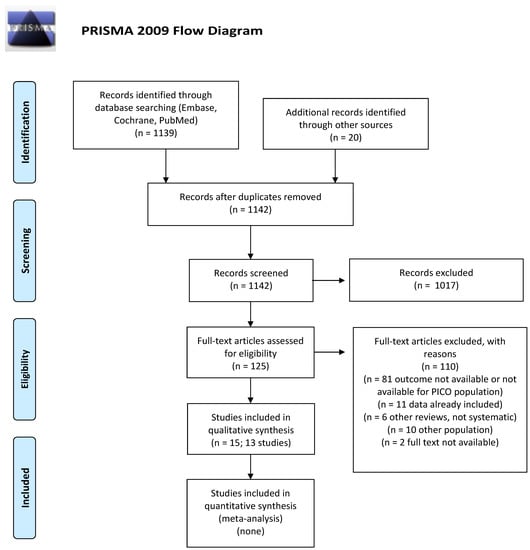- Moher, D.; Liberati, A.; Tetzlaff, J.; Altman, D.G. The PRISMA group. Preferred reported items for systematic reviews and meta-analysis. The PRISMA statement. PLoS Med. 2009, 6, e1000097. [Google Scholar] [CrossRef]