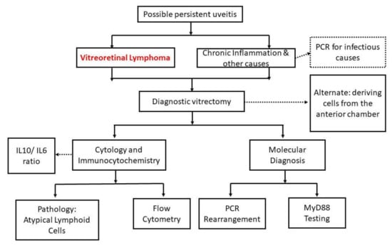 - Tan, W.J.; Wang, M.M.; Ricciardi-Castagnoli, P.; Tang, T.; Chee, S.P.; Lim, T.S.; Chan, A.S.Y. Single-Cell MYD88 Sequencing of Isolated B Cells from Vitreous Biopsies Aids Vitreoretinal Lymphoma Diagnosis. Blood 2019, 134, 709–712. [Google Scholar] [CrossRef]