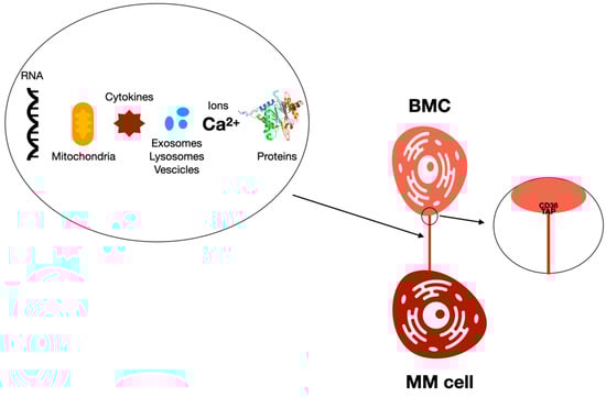 An example of a hematological disease in which TNTs appear to play a role is multiple myeloma (MM), the second most common hematologic tumor. It remains incurable for most patients, even though essential progress has been made in the therapy of this tumor [102,103,104,105,106],