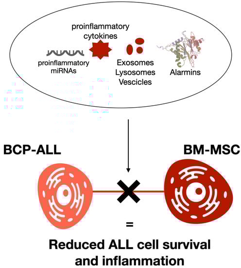BCP-ALL cells employ TNTs to provoke an inflammatory microenvironmental condition within BM cells. The transfer of pro-inflammatory substances, such as specific microRNAs, alarmins, and cytokines, was involved in tumor development and progression in several tumors. Several cytokines were demonstrated to be involved in leukemia persistence. TNTs were blockaded, reducing this inflammatory condition and reducing ALL cell survival.