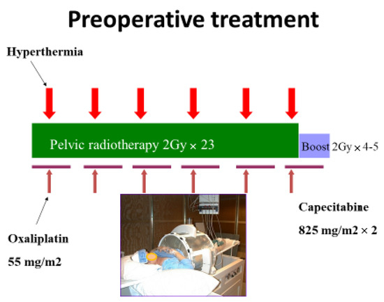 - Gani, C.; Schroeder, C.; Heinrich, V.; Spillner, P.; Lamprecht, U.; Berger, B.; Zips, D. Long-term local control and survival after preoperative radiochemotherapy in combination with deep regional hyperthermia in locally advanced rectal cancer. Int. J. Hyperth. 2016, 32, 187–192. [Google Scholar] [CrossRef] [Green Version]