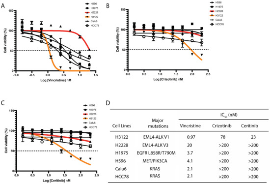 3.1. NSCLC Cells Expressing EML4-ALK V1 Are Hypersensitive to Vincristine