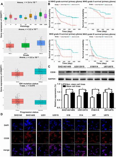 3.3. CD39 Expression Was Upregulated in GSCs