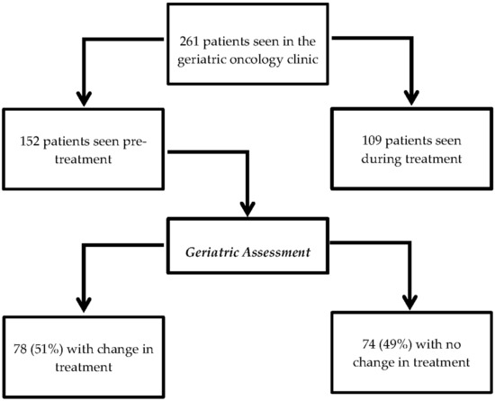 - Kenis, C.; Decoster, L.; Flamaing, J.; Debruyne, P.R.; De Groof, I.; Focan, C.; Cornelis, F.; Verschaeve, V.; Bachmann, C.; Bron, D.; et al. Adherence to geriatric assessment-based recommendations in older patients with cancer: A multicenter prospective cohort study in Belgium. Ann. Oncol. 2018, 29, 1987–1994. [Google Scholar] [CrossRef] [PubMed]