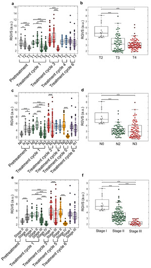 2.6. Correlation of RGVS Parameter with Cancer Staging (TNM Staging)