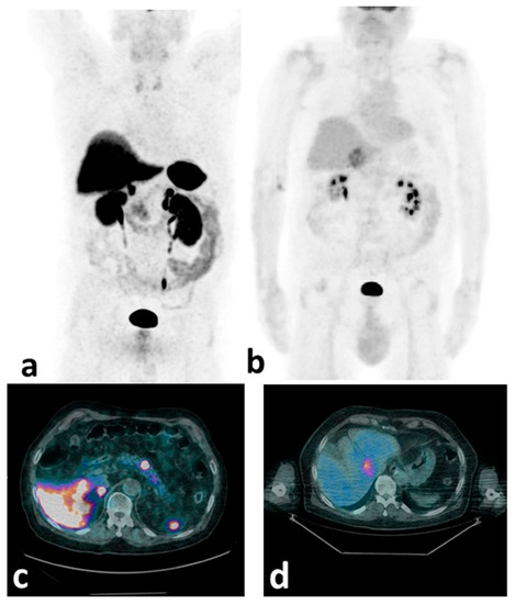 Currently, heterogeneity in SSTR distribution at the lesional level is followed by [18F]FDG PET/CT imaging. [18F]FDG is a marker of the glycolytic metabolism, and is highly taken up by high-grade, poorly differentiated tumors, such as high-grade G2 (Ki-67 > 10%), NET G3, or NEC. Therefore, [18F]FDG-positivity is correlated with the worst prognosis [61,62,63,64,65].