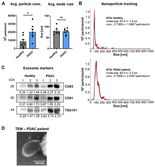 - Melo, S.A.; Luecke, L.B.; Kahlert, C.; Fernandez, A.F.; Gammon, S.T.; Kaye, J.; LeBleu, V.S.; Mittendorf, E.A.; Weitz, J.; Rahbari, N.; et al. Glypican-1 identifies cancer exosomes and detects early pancreatic cancer. Nature 2015, 523, 177–182. [Google Scholar] [CrossRef] [Green Version]