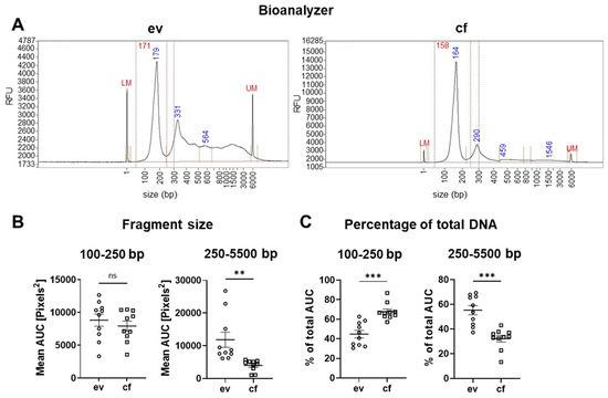3.2. evDNA Contains Significantly More Longer DNA Fragments Compared to cfDNA