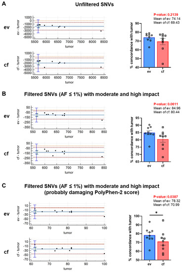 3.5. Concordance of Variant Calls between evDNA/cfDNA and tumorDNA