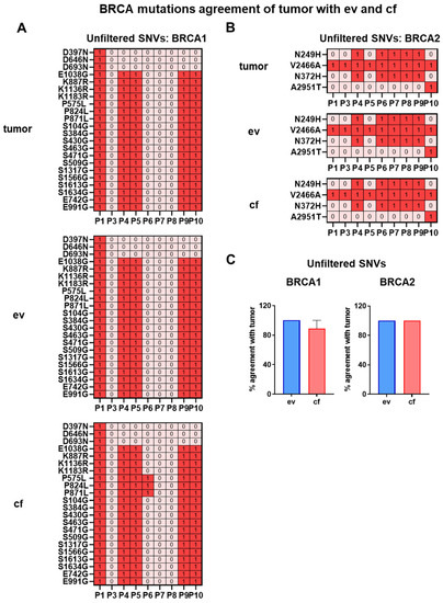3.8. Comparison of BRCA1/2 Variant Prediction between ev-, cf- and tumorDNA