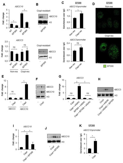 Overall, these data suggest that EP300 acts as a key activator of ABCC10 in cisplatin-treated MDA-MB-231 cells but requires p53 to trigger direct ABCC10 transcription in response to the drug.