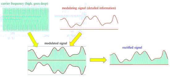 - The modulation spectrum is a low-frequency time-fractal [113], described by fractal physiology [117,118,119,120], which agrees with the homeostatic molecular temporal balance [113]. mEHT extensively uses the modulation technique to identify fractal structures in space and time (dynamics) in spatiotemporal identification [113]. The electric parameters (resistance and capacity) depend on the malignant status [121]. The selection between malignant and healthy cells was measured as a characteristic time-fractal [122]. The modulation delivers temporal information executing enzymatic processes at the cell membranes [123], promoting the consequence of the excitation.