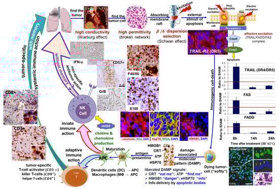 - Andocs, G.; Meggyeshazi, N.; Okamoto, Y.; Balogh, L.; Kovago, C.; Szasz, O. Oncothermia treatment induced immunogenic cancer cell death. Oncothermia J. 2013, 9, 28–37. [Google Scholar]
