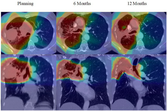 An example of how the dose was propagated from the planning scan onto the 6- and 12-month time points.