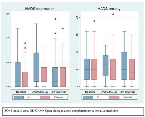 Congruent with other studies [21,47], we found that OD-CAM tends to be superior to SC in reducing patients’ distress and, in particular, patients’ anxiety. Studies have shown a high level of anxiety among patients who seek CAM counseling because they explore every possible treatment option [48]. OD-CAM may thus reduce patients’ levels of anxiety because it includes counseling on both conventional treatment and CAM options. In addition, OD-CAM is an open dialogue, viewing and respecting patients as whole and unique physical, emotional, social and spiritual beings with values, knowledge, preferences and beliefs. Other researchers found that genuinely approaching patients as whole and unique persons leads to emotional well-being [49,50]. Finally, patients in the OD-CAM group may have reported better emotional QoL and lower levels of anxiety because their use of CAM tended to be higher than in the SC group. Use of CAM has in itself been shown to improve emotional well-being [51].