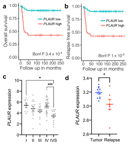 3.1. High Initial PLAUR Expression in Neuroblastoma Predicts Poor Survival; a Decrease in PLAUR Expression Is Associated with Tumor Relapse