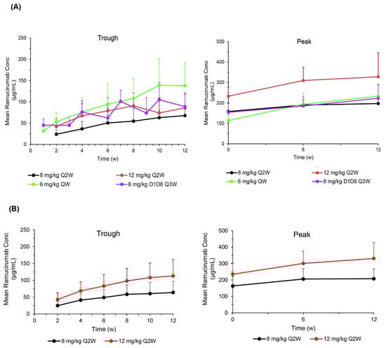 - O’Brien, L.; Westwood, P.; Gao, L.; Heathman, M. Population pharmacokinetic meta-analysis of ramucirumab in cancer patients. Br. J. Clin. Pharmacol. 2017, 83, 2741–2751. [Google Scholar] [CrossRef] [Green Version]