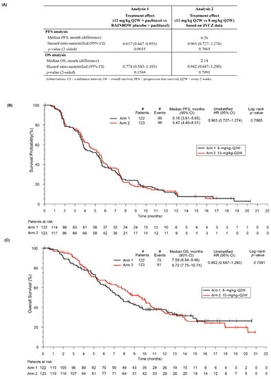 Chicago/Turabian StyleShah, Manish A., Anghel Adrian Udrea, Igor Bondarenko, Was Mansoor, Raquel Guardeño Sánchez, Tomasz Sarosiek, Silvia Bozzarelli, Michael Schenker, Carlos Gomez-Martin, Carys Morgan, and et al. 2022. "Evaluating Alternative Ramucirumab Doses as a Single Agent or with Paclitaxel in Second-Line Treatment of Locally Advanced or Metastatic Gastric/Gastroesophageal Junction Adenocarcinoma: Results from Two Randomized, Open-Label, Phase II Studies" Cancers 14, no. 5: 1168. https://doi.org/10.3390/cancers14051168
