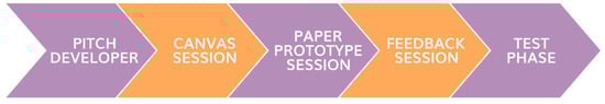 Within the co-creational process, a pitch meeting, a ‘canvas session’, a ‘paper prototype session’, a ‘feedback session’ and a ‘test phase’ were conducted (Figure 1). All sessions and phases were facilitated by the digital developers of the application.