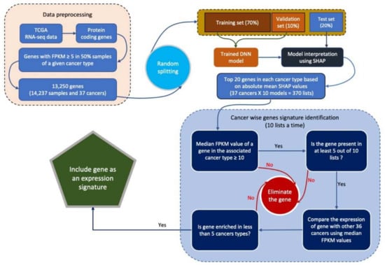 - Divate, M.; Tyagi, A.; Richard, D.J.; Prasad, P.A.; Gowda, H.; Nagaraj, S.H. Deep learning-based pan-cancer classification model reveals cancer-specific gene expression signatures. bioRxiv 2021. [Google Scholar] [CrossRef]