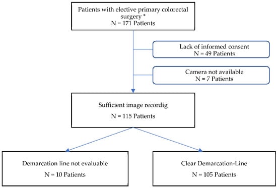 - Jafari, M.D.; Wexner, S.D.; Martz, J.E.; McLemore, E.C.; Margolin, D.A.; Sherwinter, D.A.; Lee, S.W.; Senagore, A.J.; Phelan, M.J.; Stamos, M.J. Perfusion Assessment in Laparoscopic Left-Sided/Anterior Resection (PILLAR II): A Multi-Institutional Study. J. Am. Coll. Surg. 2015, 220, 82–92.e1. [Google Scholar] [CrossRef] [Green Version]