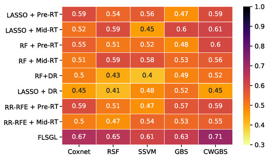 | RR-RFE | CWGBS | Pre-RT | 2–7 | 0.54 (0.51–0.60) | 24 |