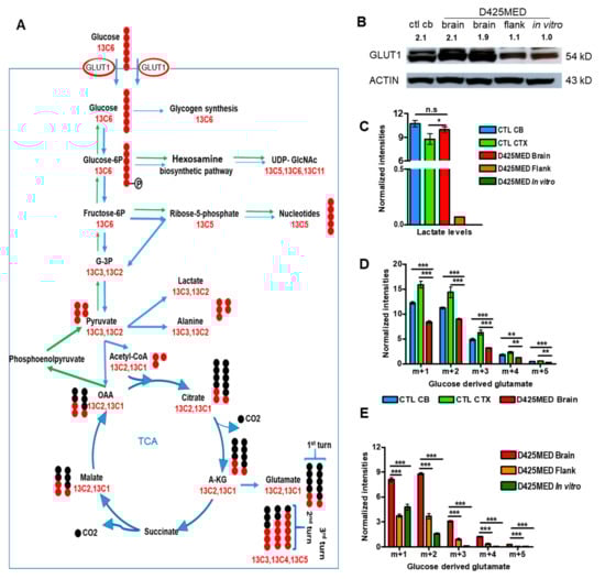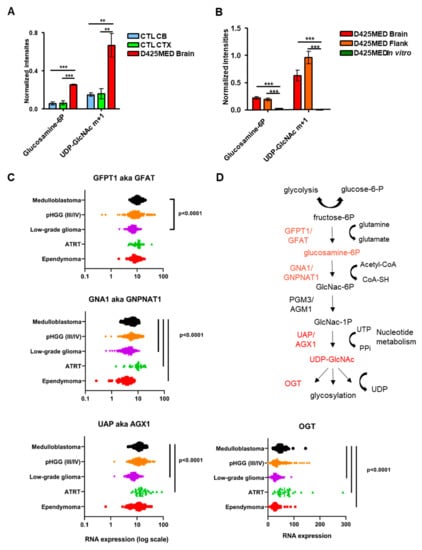 3.5. Gluconeogenesis Contributed to the Hexosamine Biosynthetic Pathway and Was Upregulated in Orthotopic D425MED High-MYC Medulloblastoma Tumor Compared to Normal Brain