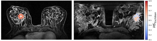 The MRI images were acquired with an ESPREE 1.5T MR scanner (Siemens, Erlangen, Germany) equipped with a phased-array bilateral breast coil (CP breast coil, Siemens, Erlangen, Germany). The MRI protocol follows the EUSOBI recommendations [14] and contained T2-weighted, diffusion-weighted, and dynamic contrast-enhanced (DCE) MRI. The DW MR images, forming the basis for constructing the CSH-images, were acquired using a single-shot spin-echo echo planar imaging (SE EPI) sequence with fat-saturated, short T1 inversion recovery (TR = 5200 ms, TE = 69 ms, field of view (FoV) = 360 mm × 185, pixel size = 2.57 mm × 2.57 mm, slice thickness = 4.5 mm) and diffusion gradients applied along three orthogonal directions with five b-values of 0, 50, 250, 500, and 800 s/mm. DCE-MRI, used for guiding tumor delineation, was acquired using a k-space weighted spoiled gradient echo (TR = 5.46 ms, TE = 2.59 ms), with spectral adiabatic inversion recovery (SPAIR) fat suppression and spatial resolution 1 mm × 1 mm × 1.5 mm, following a bolus injection of the contrast agent Gadovist (0.08 mmol/kg).