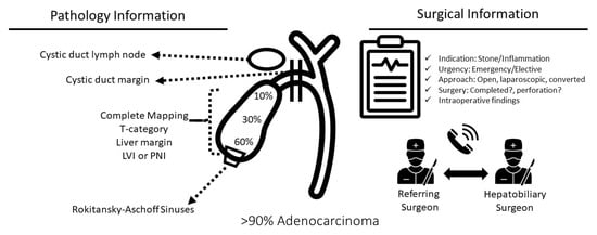 - Horkoff, M.J.; Ahmed, Z.; Xu, Y.; Sutherland, F.R.; Dixon, E.; Ball, C.G.; Bathe, O.F. Adverse outcomes after bile spillage in incidental gallbladder cancers: A population-based study. Ann. Surg. 2021, 273, 139–144. [Google Scholar] [CrossRef]