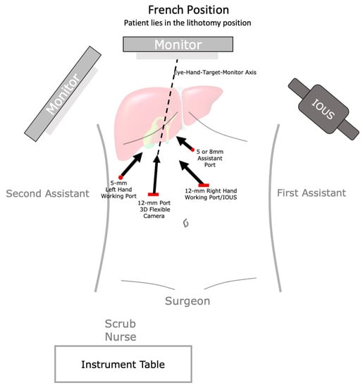 - Machado, M.A.; Makdissi, F.F.; Surjan, R.C. Totally Laparoscopic Hepatic Bisegmentectomy (s4b+s5) and Hilar Lymphadenectomy for Incidental Gallbladder Cancer. Ann. Surg. Oncol. 2015, 22 (Suppl. 3), S336–S339. [Google Scholar] [CrossRef] [PubMed]