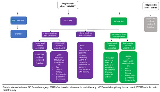 - Vogelbaum, M.A.; Brown, P.D.; Messersmith, H.; Brastianos, P.K.; Burri, S.; Cahill, D.; Dunn, I.F.; Gaspar, L.E.; Gatson, N.T.N.; Gondi, V.; et al. Treatment for Brain Metastases: ASCO-SNO-ASTRO Guideline. J. Clin. Oncol. 2021, 40, 452–516. [Google Scholar] [CrossRef] [PubMed]