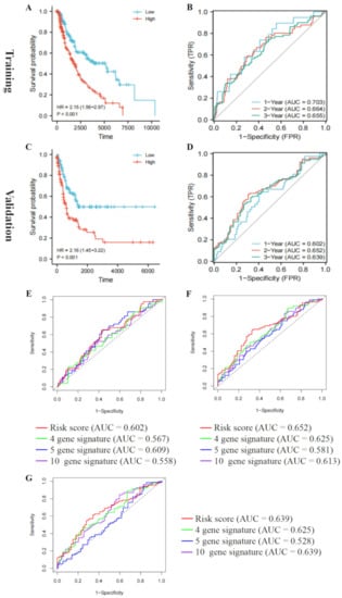 2.13. Independent Prognostic Ability of the Five-Gene Signature